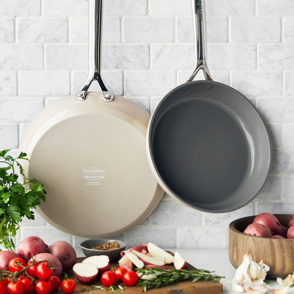 This essential frypan set brings a sleek style to any kitchen with no compromise in performance. These frypans are constructed from heavy-gauge aluminum and feature GreenPan’s signature PFAS-Free ceramic nonstick. Plus, the induction ready design delivers quick and even heating on any stovetop.