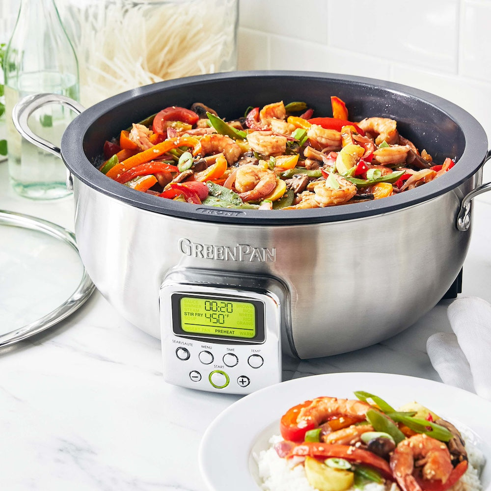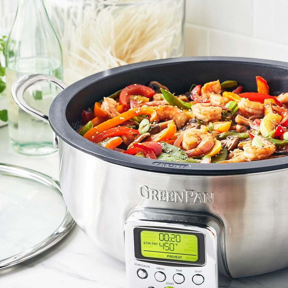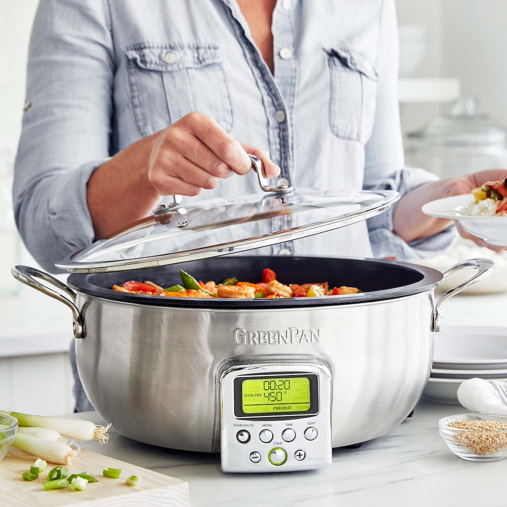 GreenPan Multifunction 6QT Deep Electric Skillet, Stainless Steel
