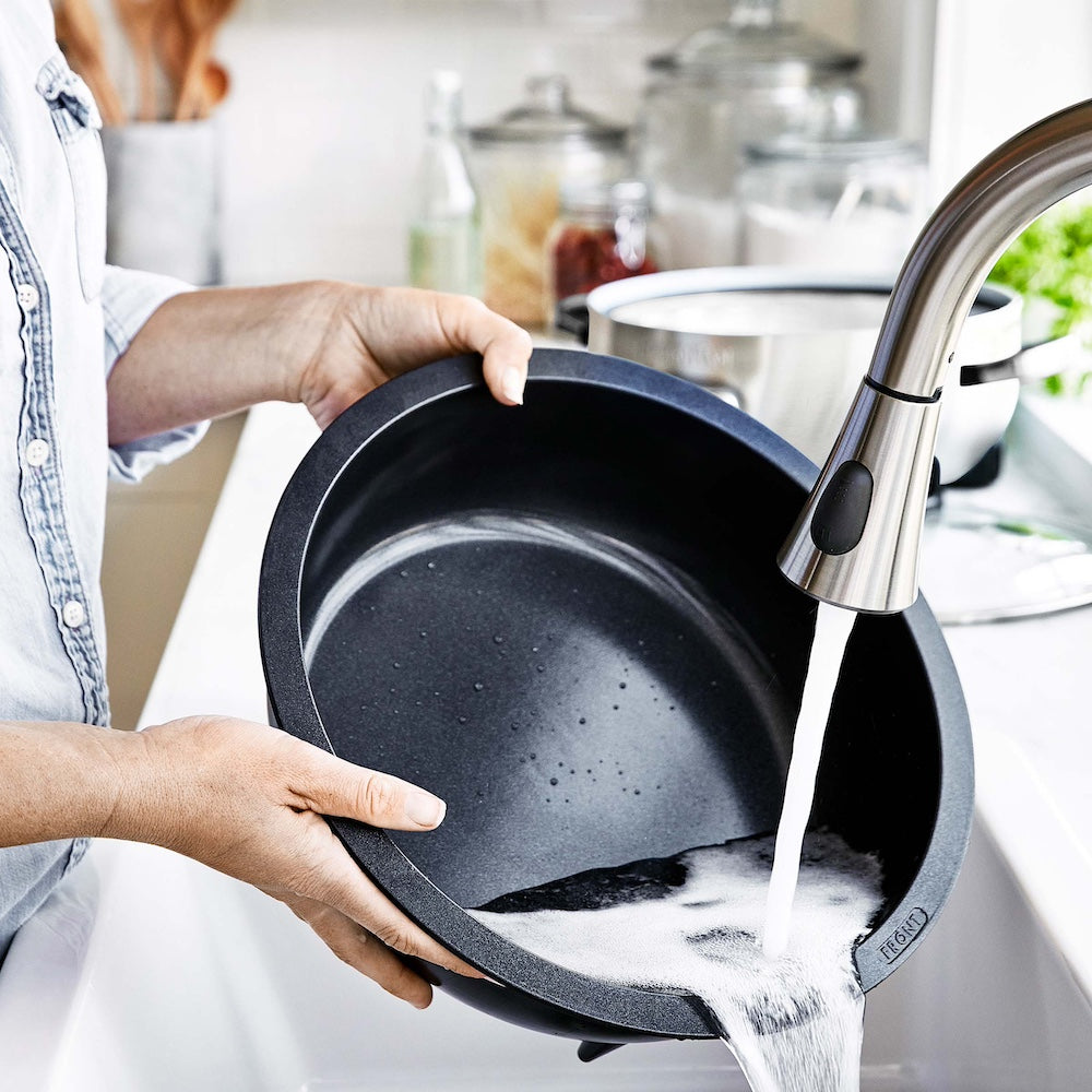 Cleanup is effortless with GreenPan’s Elite Essential Smart Skillet. Their signature PFAS-free ceramic nonstick releases food with ease, so most messes wipe away in seconds. For deeper cleaning, the removable pan lifts out and goes straight into the dishwasher—making this skillet as easy to care for as it is to cook with.